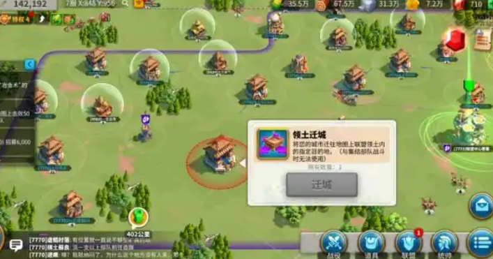 领土迁城是另一种指定迁城方式,适用于已加入联盟的玩家。该方式允许将城市迁移至联盟领土范围内的任意位置,便于集中防御或协同作战。使用领土迁城需提前与联盟成员沟通,避免因领地冲突导致迁移失败。退出联盟后加入新联盟时,需等待一定冷却时间才能再次使用领土迁城,冷却时长随主城等级提升而增加,最高可达24小时。