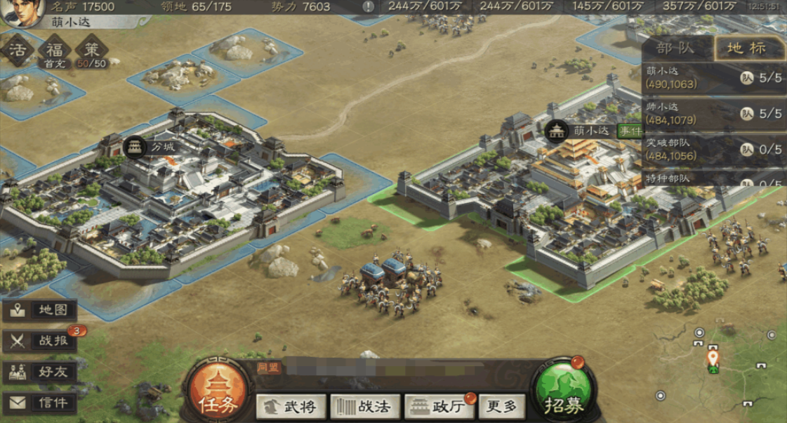 主城迁移至资源州标志着游戏中期的开始,应集中兵力打通连接盟友的路线,并占领周边码头、关口等战略要地。由于关中竞争激烈,需避免单打独斗,建议与同盟成员协作占领连地,形成防御链。主城科技应优先升级军营、征兵处等军事设施,资源类建筑可依赖屯田和地块补给暂缓建设。若需调整主城位置,可通过再起功能重置,但会损失20%资源和所有领地。
