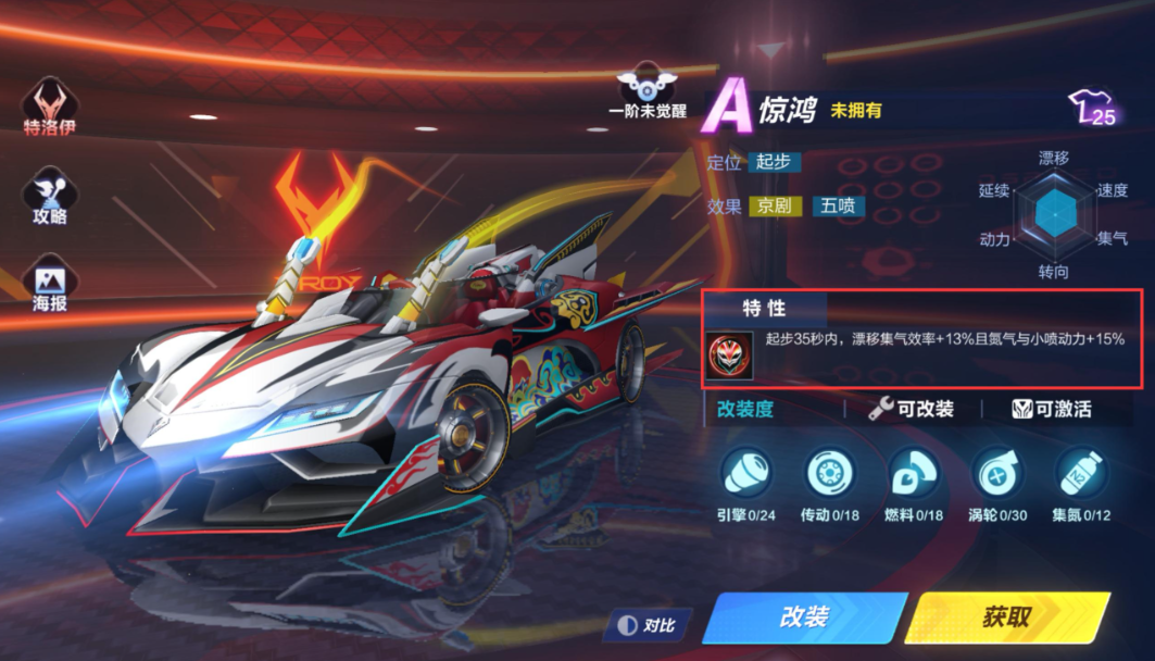 道具赛的改装思路需围绕小喷与平跑属性展开。引擎右改可提升平跑速度与小喷动力,传动左改则强化基础动力与小喷时间,虽会略微浪费氮气速度,但整体收益更高。悬挂与燃料系统的改装同样优先选择左分支,以最大化小喷动力与持续时间。惊鸿这类起步特性车虽在竞速模式更强势,但通过针对性改装后,其小喷动力仍能跻身道具赛前五,适合缺乏顶级车辆的玩家过渡使用。