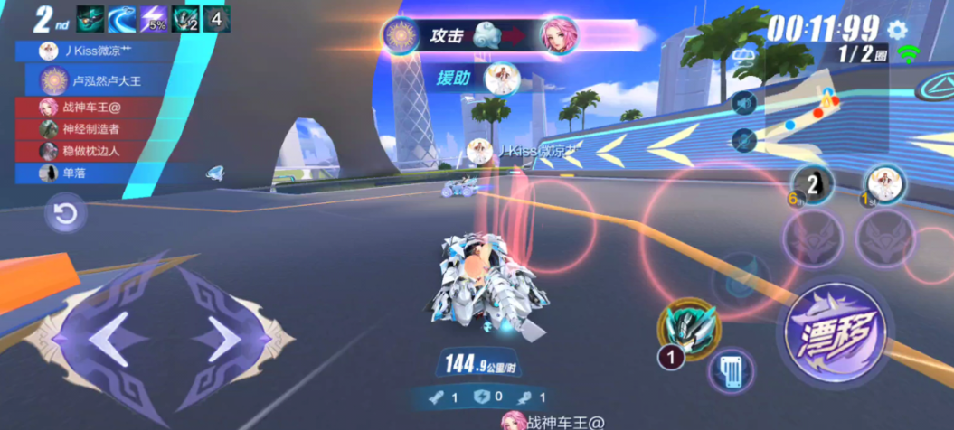 道具组合与车辆特性的联动至关重要。领跑位需携带防御型道具如天使护盾,并优先传递给队友确保团队生存。攻击型道具如酷比和导弹应交给中段位队友,用于压制对手领跑者。辅助位玩家则需专注收集氮气与群攻道具,适时使用龙卷风或香蕉皮封锁狭窄赛道。云雾与香蕉皮的叠加释放能有效提升障碍命中率,尤其在跳台或急弯处效果显著。