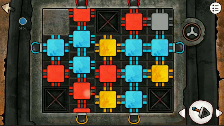进入灯塔前,玩家需先与码头管理员对话获取灯塔密码北南西东东北,输入后即可进入灯塔内部。到达三楼后,在灯泡下方会发现一个接线盒,这就是需要解开的电路谜题。接线盒内有多个可移动的彩色方块,每个方块带有不同方向的连接管,玩家需要通过拖动这些方块,使相同颜色的线路从一端连通到另一端。黄色线路接通后灯泡会变白,这是判断连接成功的重要标志。若连接错误,可以点击右上角的重新恢复布局按钮重置谜题。