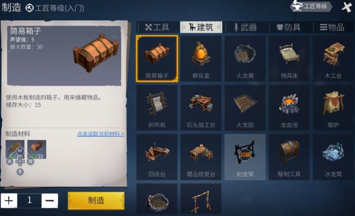 基础材料如原木、石块、亚麻等构成了游戏初期生存的关键要素。原木可通过砍伐树木获取,既能作为燃料提供一级温度,也能加工成木板用于建造一级墙、门、床等基础建筑设施,还能制作石斧、石镐等初级工具。石块则用于制作石质武器、火龙孵化室及简易储藏处,而亚麻通过加工可制成麻绳和厚布手套,这些基础材料共同支撑起玩家前期的生存需求。动物油脂和骨头等生物材料则延伸出药汤、绑带、骨矛等实用物品,形成初级生存链条。