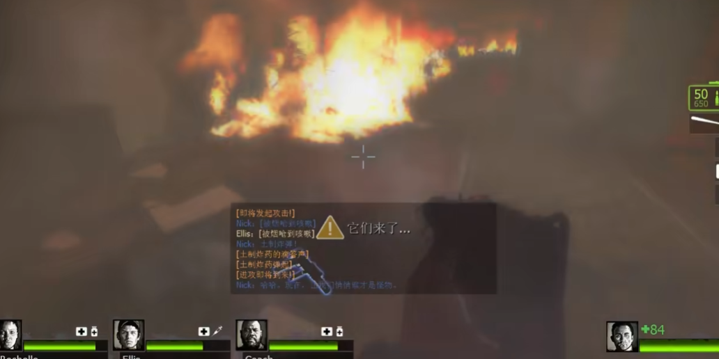 电梯区域是首个重要战斗节点,触发后需固守电梯内部或周边进行防守。电梯下降过程中会因故障停止,需手动开门进入着火楼层。环境充满视觉干扰,需快速拾取地面长枪并沿右侧安全路径移动,注意分辨真实火焰与燃烧的感染者。通过火场后进入大厅清理尸群,最终进入标有EXIT的安全门即可完成本关。关键技巧在于资源管理和对特殊感染者的快速反应,如Boomer需远距离击杀避免吸引尸潮。