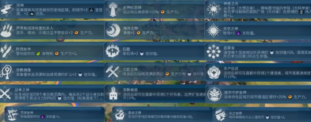 实际操作中万神殿选择还需结合地图环境动态调整。若开局地形以牧场为主,天空之神的临时文化加成可能更为实用;泛滥平原或沼泽地形则适合芦苇沼泽女神提供的初期产能。这种灵活性要求玩家在积累25信仰前充分侦察周边环境,避免固化思维。无论选择哪种万神殿,都应确保其效果能与至少两个城市的发展需求相匹配,否则将难以发挥战略价值。