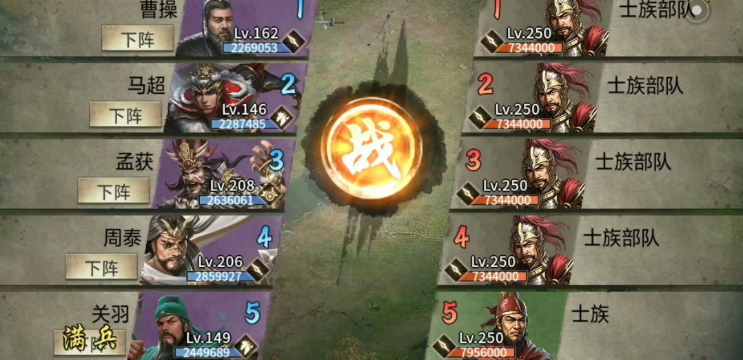 顺利通关250副本,首先得把阵容搭配好。推荐使用五车马超带瞎子、三车周泰不带副将、四车曹操带夏侯渊、火车马超带副将随意、二车关羽带孙权。这套阵容的核心输出是周泰和马超,记得把夏侯渊换到曹操位置增加伤害。硬件方面,神兵至少250级,步兵压制3本,挂饰和御宝尽量用至尊级别,宝石和神石全6级会更稳。如果缺曹操士族,可以试试其他强力武将替代,但得调整打法策略。