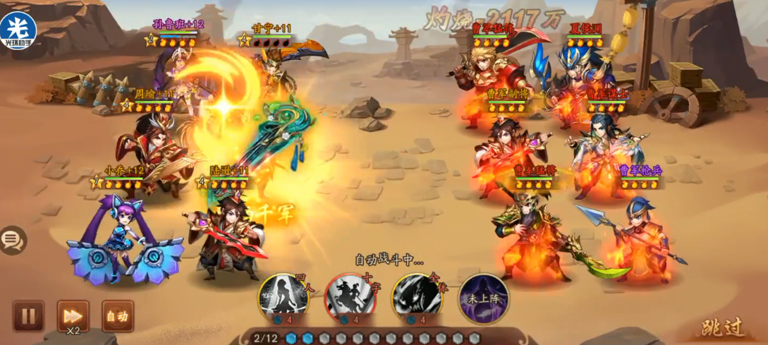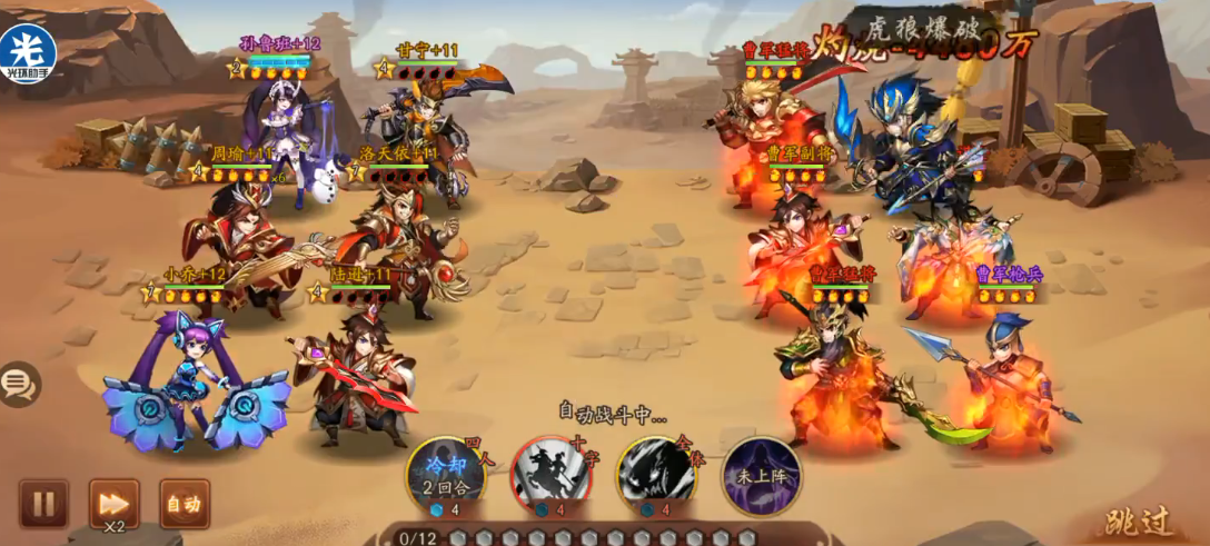 战斗开始时需手动释放张宝的眩晕技能针对敌方后排弓手,防止其叠加暴击效果。第二回合立即触发吕布与貂蝉的合体技,对敌方中排造成范围伤害并附加灼烧效果。若敌方前排盾将存活超过三回合,会触发回血机制,需集中火力优先击破其中一路的盾将。战斗中要注意保留至少一个控制技能应对敌方第六回合的爆发阶段,可通过荀彧的水遁技能或大乔的治疗提升容错率。