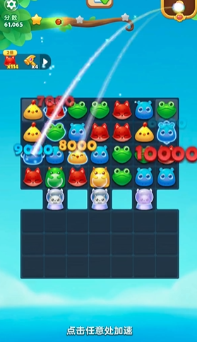 蓄电精灵的消除方法其实很简单,咱们只需要把同色小动物移动到它旁边。它会自动吃掉相邻的同色动物,并且每吃一个,手中的能量球就会充能一部分。如果周围还有同色动物,它会继续移动并吃掉,直到能量充满。这时候,它的行为会根据吃掉的小动物类型产生不同效果:如果吃的是普通动物,它会释放三个攻击点消除目标;如果吃到了特效动物,比如直线或爆炸特效,它会在攻击位置生成对应的特效,帮助咱们大范围消除障碍。