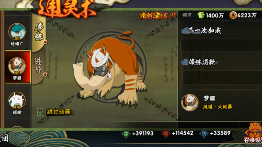 资源分配方面,蜘蛛的养成周期较长,需要优先保证基础属性达标。声望和铜币的消耗主要集中在400级之后的突破阶段,建议提前储备至少800万声望和30亿铜币作为保障。在通灵兽整体培养顺序上,蜘蛛更适合作为第三或第四顺位选择,前期可先培养忍犬、梦貘等过渡型通灵兽。养成过程中要注意平衡攻击强度与减速效果的触发概率,确保实战稳定性。