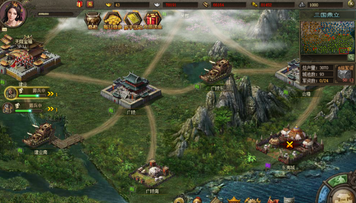 粮食和银币是初期主要资源,咱们可以通过推开迷雾拾取宝箱来补充。优先解锁木材区和农田等基础建筑,避免资源短缺影响进度。黑市到45-46级时记得卡功勋,打满200功勋能快速通过48级刘璋副本。国战提供的经验比副本多50%,40级后可以多参与国家任务和国战杀敌来加速升级。