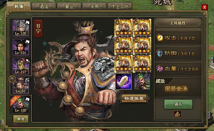 武将和套装的搭配直接影响战斗表现。朱雀套装适合太史慈、黄忠、甘宁、许褚、夏侯惇这类高输出武将,优先出这套装备能提升爆发力,但推图时抵抗能力稍弱,更适合武斗和副本。白虎套装适合以弱打强的场合,后期可合成真驱虎套装,增强整体战力。青龙套装适合周泰、魏延等武将,大幅提高带兵数,适合需要短时间消耗大量资源的战斗场景。