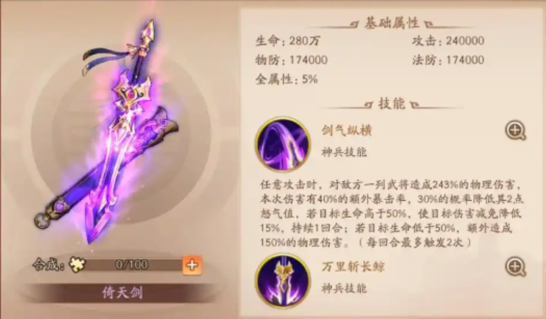 在技能搭配上,魏延的嗜血狂袭和狼佑被动是关键。嗜血狂袭能让他在低血量时爆发更高伤害,并且100%吸血,续航能力直接拉满;而狼佑被动则能解控、回怒,甚至免疫控制,让他在关键时刻反打。如果运气好触发多次必杀技,魏延的伤害会更加恐怖。魏延虽然强,但也需要一定的培养资源。优先提升他的星级和装备,尤其是增加暴击和吸血属性的装备,能让他输出更稳。神兵方面,倚天剑是不错的选择,能进一步提升他的斩杀能力。
