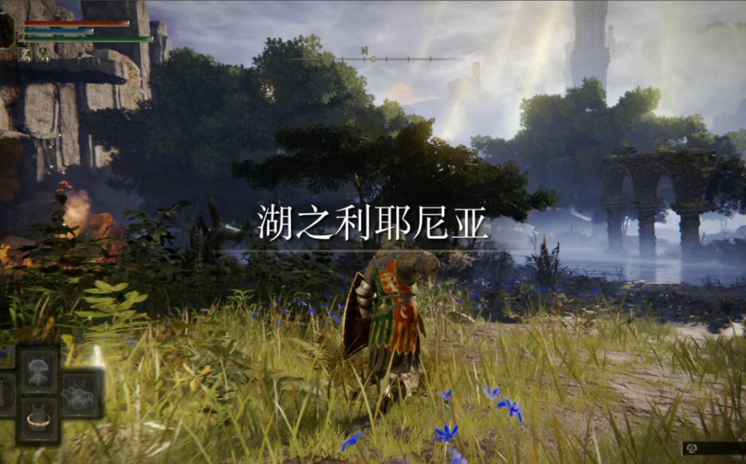 水母盾的获取位置位于宁姆格福东部的四钟楼山脚区域,具体坐标为地图标记的废弃马车附近。玩家需击败守卫马车的敌人并开启宝箱获得。装备后需满足力量属性要求才能正常使用战技。该技能与部分增益类战技(如军旗)存在效果叠加可能,但具体交互机制需实际测试验证。