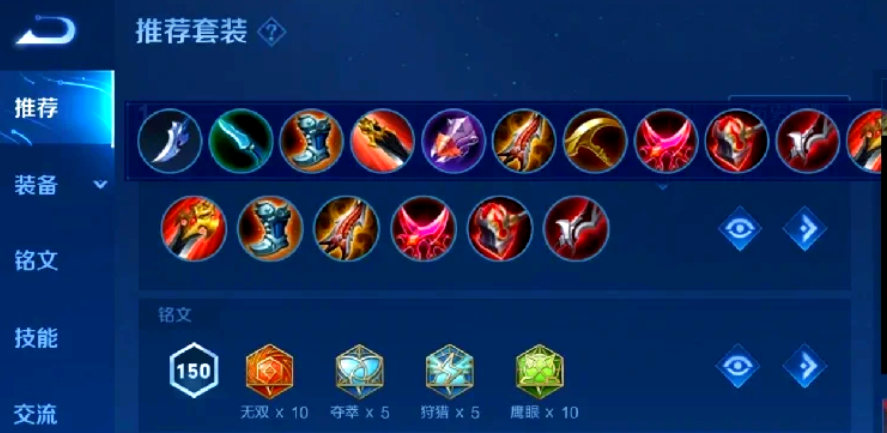 装备说完了,其实铭文搭配也特别关键,它决定了你开局的手感和前期强度。猴子通用的铭文搭配红色通常选择十个无双,大幅提升暴击效果,让你的暴击伤害更加恐怖。绿色铭文毫无疑问是十个鹰眼,提供物理攻击和穿透,这是物理英雄的标配。蓝色铭文的选择比较多变,常见的是十个夺萃,提供16%的物理吸血,这样你就不用专门出泣血之刃了,续航能力非常强,刷野基本不掉血。也有玩家喜欢带一些狩猎增加攻速和移速,或者带兽痕增加暴击率和生命值。
