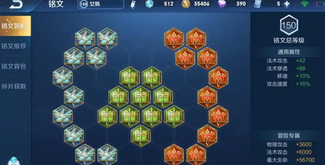 铭文方面推荐使用十个狩猎、十个心眼和十个梦魇,这套搭配能提供可观的移速、攻速和法术穿透,让女娲过程中更灵活地穿梭地图,及时参与小规模团战。狩猎提供的移动速度加成非常重要,能让女娲更快地转线支援,心眼和梦魇则能强化前期的能力和对敌人的压制效果。