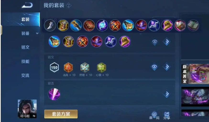 铭文搭配方面,红色优先选择无双来增加暴击率和暴击伤害,蓝色推荐兽痕以补充暴击属性和生命值,绿色则选用敬畏铭文来获得法术吸血与物理防御加成。这样的铭文配置能有效优化司马懿的续航与输出稳定性,使其在激烈对抗中保持更强的压制力。