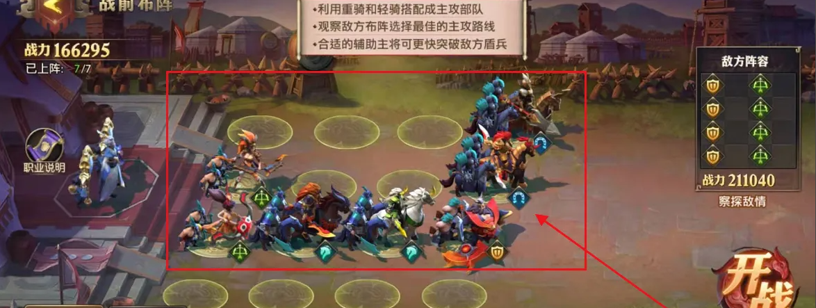 奇计篇的阵容搭配思路核心在于利用骑兵的高机动性进行集中突破,具体操作是安排三名骑兵武将集中在同一路发动攻击,目标往往是敌方的关键主将。在布阵时,需要注意骑兵冲锋的前方最好空出一个格子,这样能让骑兵部队更快地切入敌阵,直奔后排脆弱的弓兵或谋士。除了这支突击队,还需要安排足够坚实的前排来扛住其他路的压力,通常推荐再搭配三名防御型的肉盾武将,与骑兵排在不同列,稳稳守住阵地。这样一来,攻守就能兼备,既有锋利的长矛刺穿一点,也有坚固的盾牌稳住全局。