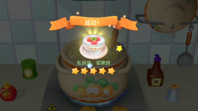 所以制作浆果捞是必须掌握的。它的配方不算复杂,但材料需要花点心思收集:你需要2个白色浆果、1个红色浆果和1个橙色浆果。白色浆果比较特殊,只在晚上八点到凌晨五点之间,在拉雅雪山出现,记得定好闹钟去摘。红色浆果和橙色浆果在浆果丛林里就能找到,全天都有,但采完一轮后要等一段时间刷新。凑齐材料后,去家里的厨房灶台或者餐厅的研究机器,放入食材,调整好火力(一般用中火),按照提示操作就能做出来了。