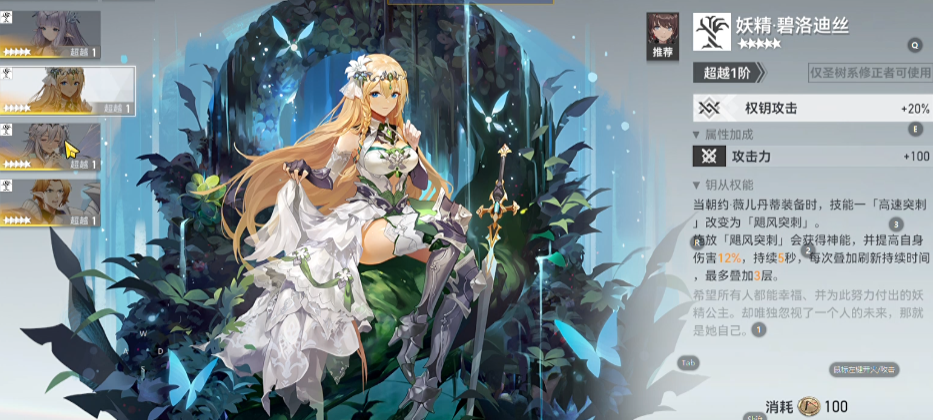 毫无争议的毕业级首选是其专属五星钥从妖精·碧洛迪丝。这件钥从的效果精准地服务于她的核心打法:每次释放技能一时能获得可叠加的增伤效果。由于其技能循环允许她在短时间内多次打出技能一,操作得当时能在约20秒内轻松叠满增益,使得这件钥从即使在一阶状态下也能提供相当于常驻36%技能伤害加成的巨大提升,其提升幅度之大堪比一套完整的刻印加成,是追求极致输出的管理员最直接有效的选择。