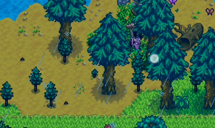 进入神秘森林后,玩家可以获取多种珍贵资源。森林内每天刷新六个大树桩,分布在北部开阔区域和南部密林中,砍伐这些树桩能获得硬木,每个树桩产出两个硬木,每日总计十二个,是游戏中硬木的主要来源。硬木用于建造高级建筑和制作工艺品,如马厩和豪华沙发。森林生长着季节性采集物,春季有羊肚菌,夏季有蕨菜,秋季有鸡油菌,这些物品在游戏前期通常只能在此找到,是完成社区中心收集包的重要素材。西南角的池塘是钓到木跃鱼的唯一地点,除非玩家选择了森林农场开局,木跃鱼是一种珍稀鱼类,可用于捐赠或出售,池塘中还常年有鲤鱼和鲶鱼可钓。