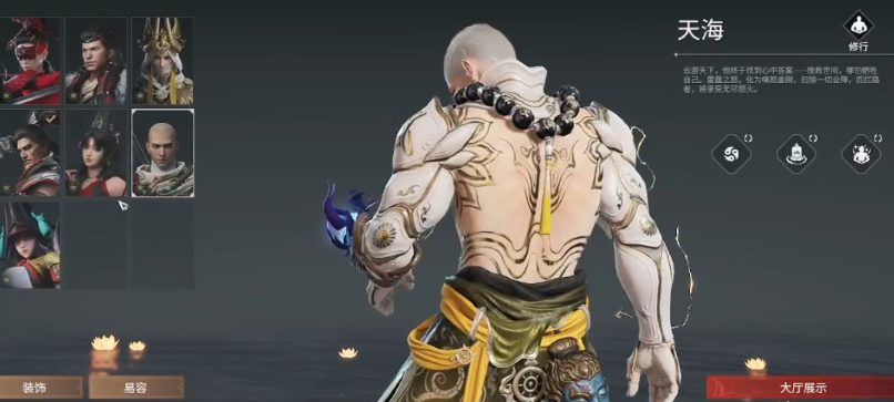 天海的技能设计兼顾防御与反打,操作门槛低且团队贡献稳定。他的金钟罩可反制普攻并触发反击,混战中能充当团队屏障。大招金刚伏魔的抓取机制简单粗暴,抓取敌人摔砸可造成范围伤害并回复自身血量,为新手提供充足的试错空间。武器搭配建议选择阔刀,其磐石架势能格挡对手普攻并立刻反击,操作直观且收益稳定,避免初期使用连招复杂的匕首或双刀。