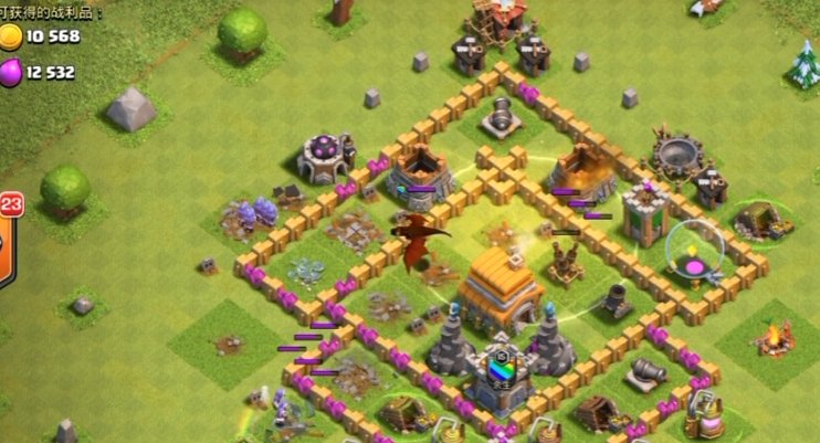空中兵种的运用需针对敌方防空弱点。飞龙作为七本解锁的终极空中单位,单体伤害高且血量可观,在复仇或常规推平中表现稳定。气球兵提供范围溅射伤害,死亡附加伤害的特性使其在集群进攻时能瓦解密集防线。雷电飞龙的高血量与闪电链折射机制,在对抗分散防御建筑时能发挥范围压制优势,而熔岩猎犬专为突破防空火箭设计,能有效掩护后续空军。需注意空中流派对法术配合度要求较高,且需精确规划进攻路径以避开核心防空区。