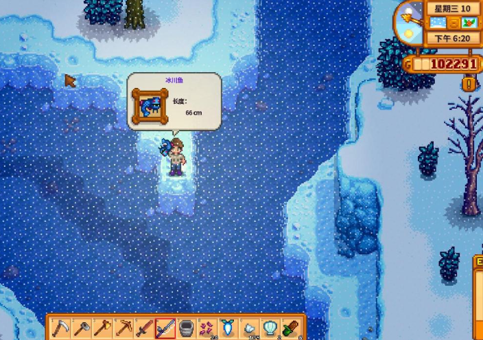 冰川鱼作为冬季鱼王,是咱们最值得关注的稀有鱼种。它只在晴天或下雪天的早上6点到晚上10点出现,位置在煤矿森林左下角的箭头岛南部水域。钓这条鱼需要至少6级钓鱼技能,建议准备铱金鱼竿和陷阱浮标,搭配增加钓鱼技能的食物会更轻松。记住每个存档只能钓到一条冰川鱼,钓到后可以考虑收藏或卖出高价。