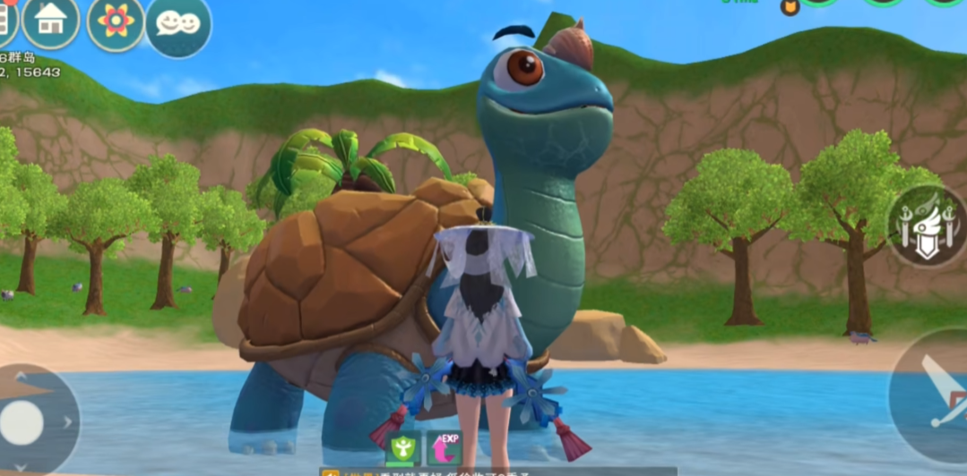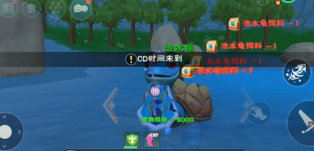 等水池龟被敲晕后,赶紧喂它准备好的饲料,大概需要14包才能让它乖乖听话。喂食过程中要小心,如果它醒来了就再敲晕继续喂。成功喂饱后使用捕捉器,这只憨态可掬的大乌龟就属于你啦!虽然它不能当坐骑,但是作为战宠还是很可靠的,特别是那厚厚的血量,前期带着它冒险会轻松不少呢。