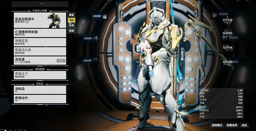狂野犀牛虽非初始战甲,但登录即送,同样适合新手使用。该战甲以高护甲和生存能力著称,二技能增幅提供极强坦度,三技能可在对抗夜灵时辅助队友。犀牛战甲图纸可在木星BOSS处掉落,获取难度较低。对于注重生存和团队辅助的新手,犀牛是开荒期的不错选择。