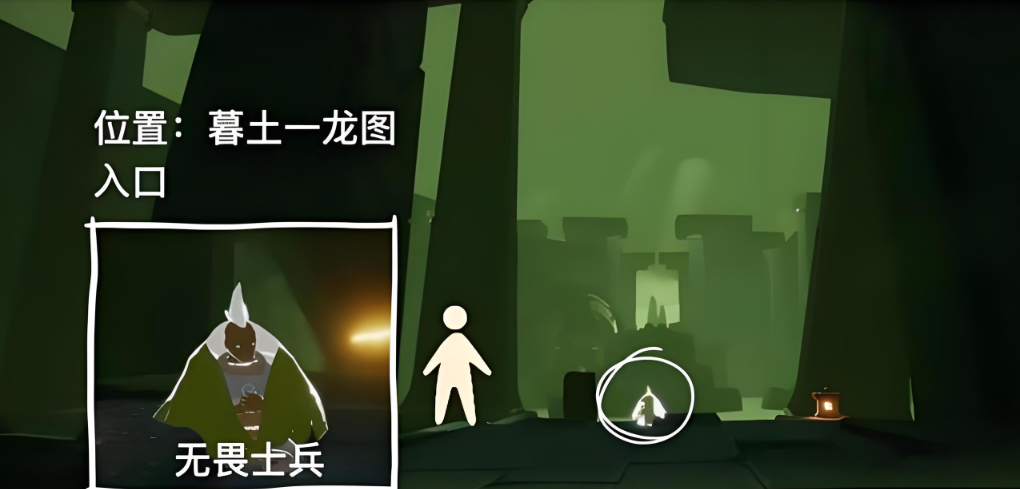 眺望先祖在远古战场城墙左侧的石阶旁,穿过四龙图时尽量贴墙飞行避开巡逻冥龙。如果能量不足可以借助场景中的烛台补充。完成所有先祖回忆后,记得返回遇境在星盘上交付先祖,这样就能永久解锁他们的动作和兑换物品啦。交付时不需要特定顺序,但建议先从简单的开始积累经验。