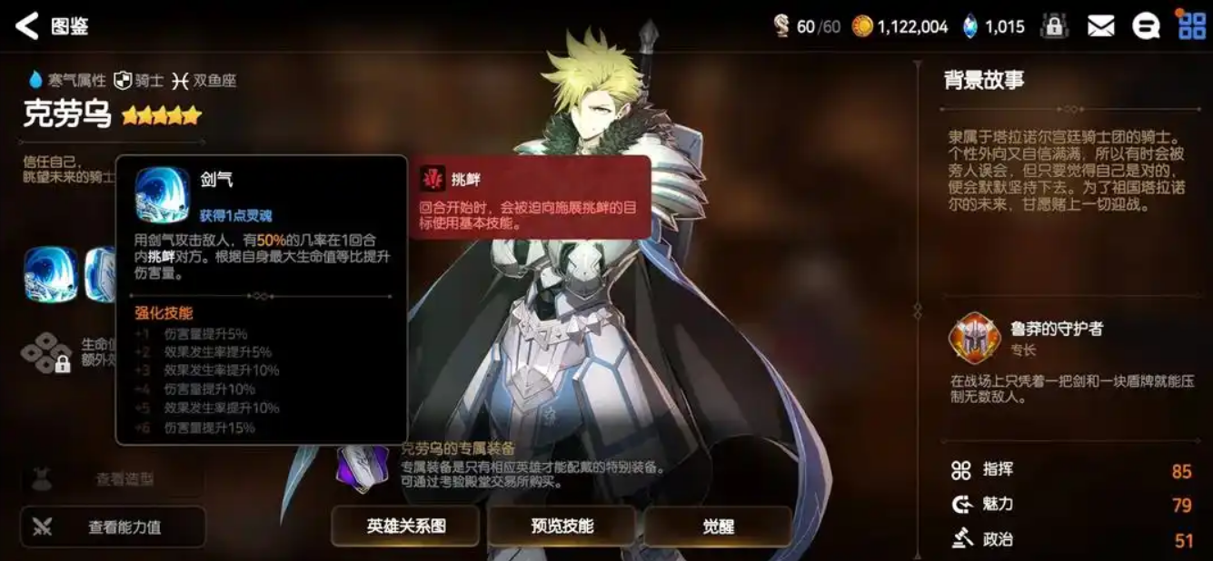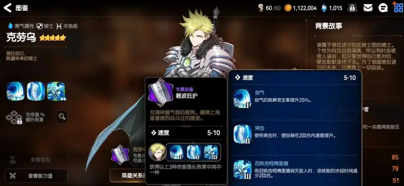 最后的骑士克劳乌是第七史诗中光属性骑士的顶级角色,兼具高生存能力与团队辅助功能。其核心定位为PVP向坦克,拥有为全体队友提供免疫效果的强力大招,同时自身面板属性优秀,能有效分担队伍伤害。在装备搭配上,优先选择速度+免疫或速度+抵抗套装,血量建议堆至28000防御力需达到1600-2000区间,速度控制在220-240之间,抗性尽量接近100%以应对控制技能。神器方面首推亚乌利斯(提升队伍坦度并分摊伤害)或荣耀之冠(降低敌方AOE伤害及灵魂获取),金刚石盾牌(减少暴击伤害)可作为备选。