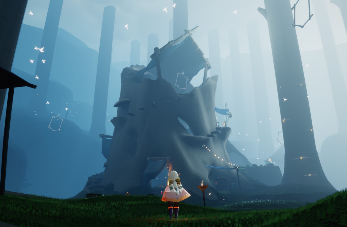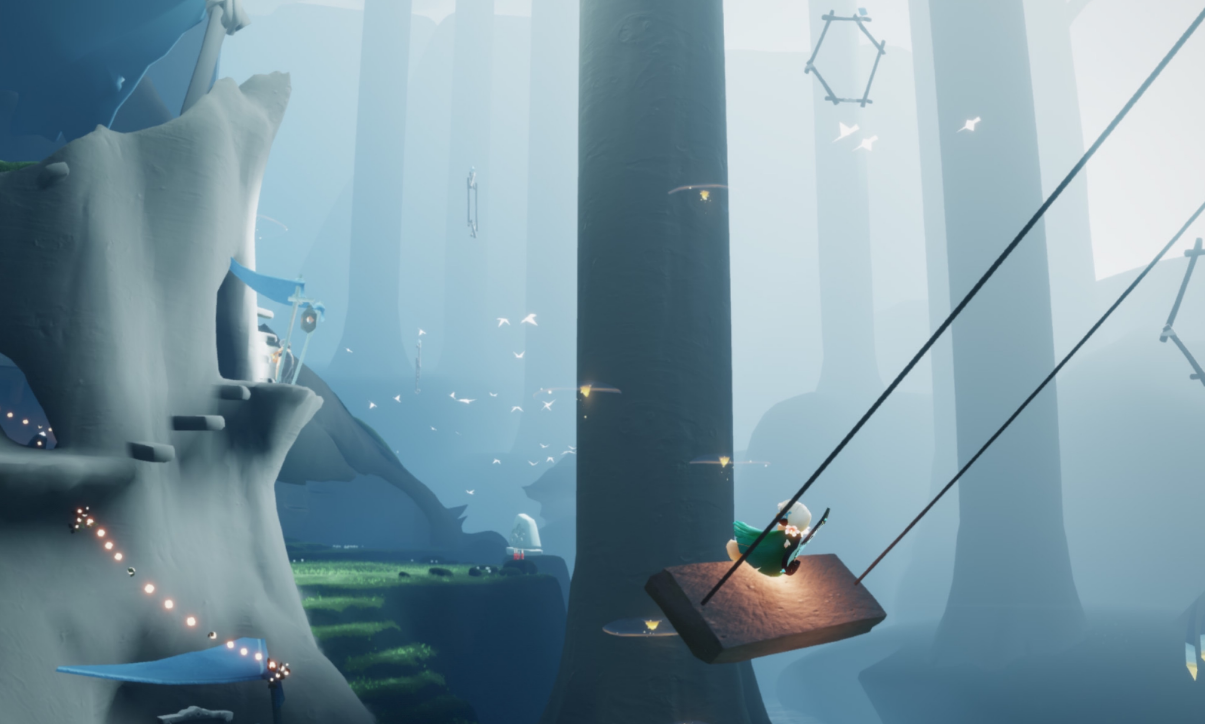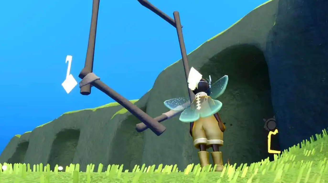 解锁背带裤的第一步是前往雨林地图,从大厅一直往前飞,来到水母图附近。这里有一个很显眼的管道,往管道的右边飞过去,穿过几棵大树就能看到集结季的树屋。绕到树屋背面,就能发现困惑植物学家先祖靠在树干旁。这位先祖藏得有点隐蔽,记得仔细找找哦。