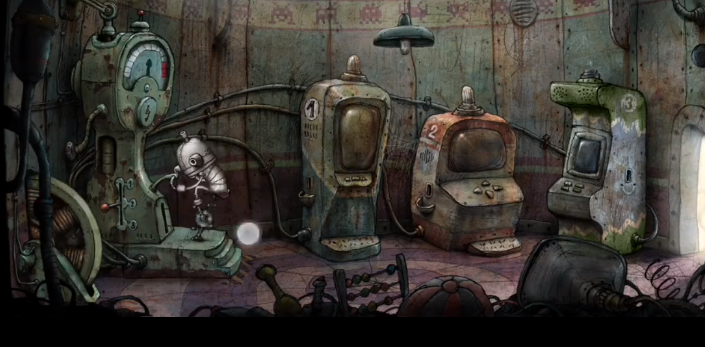 机械迷城的游戏机室位于广场左侧隐蔽楼梯上方,需先通过修电线场景的桥梁才能抵达。该区域包含三台编号游戏机,初始均无法启动,需通过左侧带链条的座椅装置发电。操作方法是坐上座椅,用鼠标逆时针转动圆圈直至进度条满,1号和2号游戏机亮起,3号因灯泡炸毁无法使用。1号游戏机为经典小蜜蜂玩法,键盘方向键控制移动,空格键发射子弹,累计1000分可兑换金币。2号游戏机是推箱子谜题,需将红色小框移动至大红框内触发开门机制。