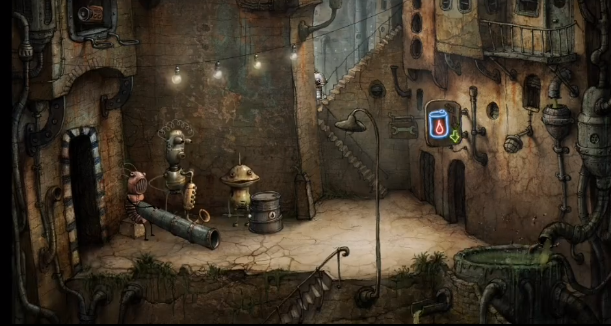 接下来要启动大钟装置,这是最关键的一步。走到红色开关旁边按一下,大钟的指针就会开始旋转。这时候赶紧去大钟下方的蓝色手柄那里,按一下手柄,主角会拿到一把大勺子。大钟旁边有个装满黄色液体的缸,这就是葵花油的来源啦!趁着大钟的小扇门打开时,快速让主角用勺子从缸里舀出葵花油,勺子上会出现金黄色的图案,说明成功拿到了。