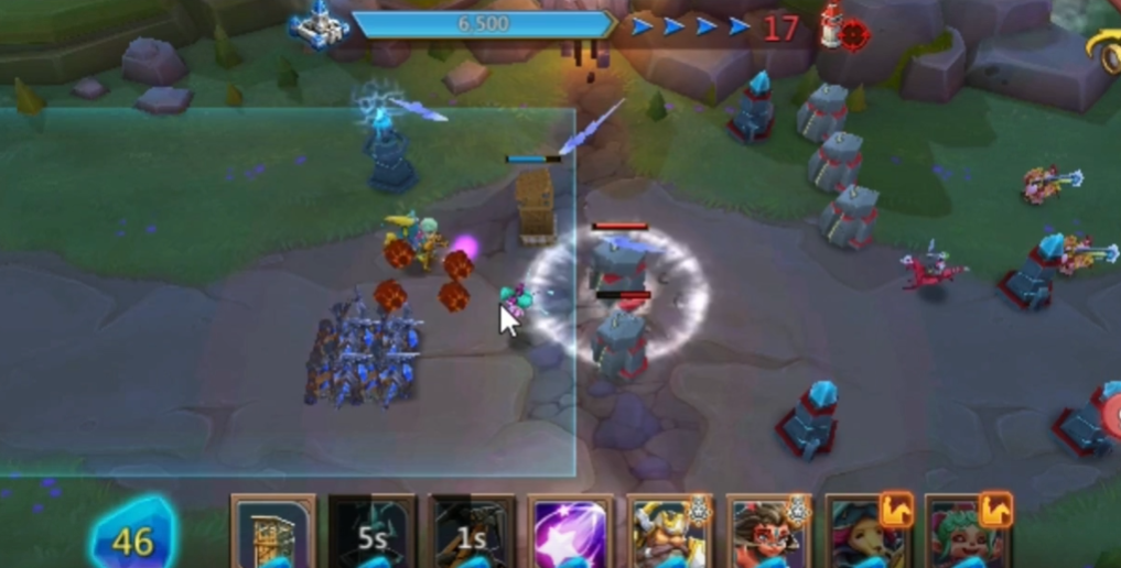战斗开始后别急着推进,咱们得先稳住防守。敌方会有大量炮塔和少量英雄,所以炮车是主力输出。记得把防御塔分散摆放,避免被一波带走。法力值很紧张,每次放置单位前都要算好消耗。中期可以召唤英雄加入战斗,但别让他们冲太前,远程输出更安全。