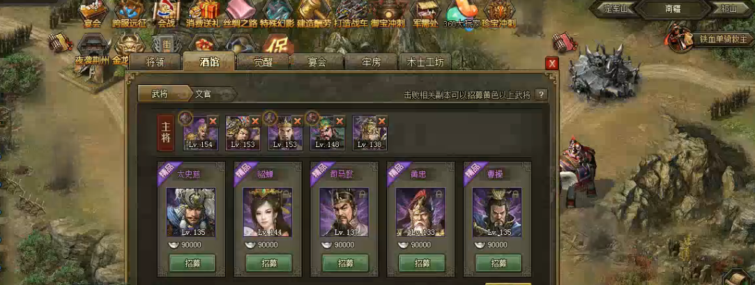 虽然190副本对装备有一定要求,但没战车的小伙伴也别着急,只要武将搭配得当照样能过。最低配置建议7珍宝加6觉醒,最好能有觉醒甘宁,如果条件允许尽量凑到8珍宝再去挑战。貂蝉是开局的灵魂武将,记得给她穿上驱虎套装,副将带上孟获或者司马懿,主要任务就是勾引敌方战法,如果没勾到就直接重开,这一步非常关键。