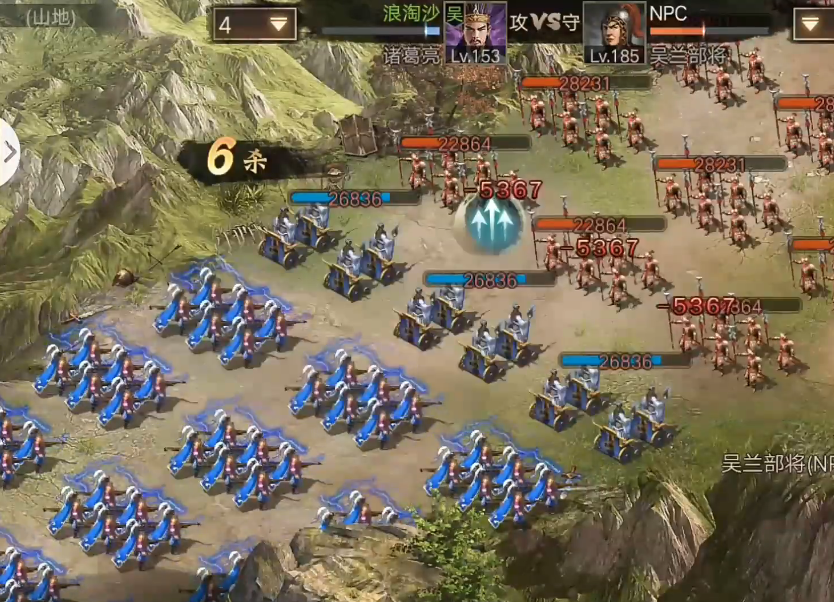 曹操应安排在第二位,最后一排可为第三位出场的夏侯惇提供四排护盾。曹操的山地防御天赋能增强生存能力。夏侯惇在护盾保护下可较轻松地打到第四个吴兰部将的最后一排。副将选择曹仁最为合适,其免疫一次伤害的特性可确保满血出场。装备方面建议夏侯惇佩戴霸下或灵龟套装并携带勋章,配合副将诸葛亮可形成有效输出。