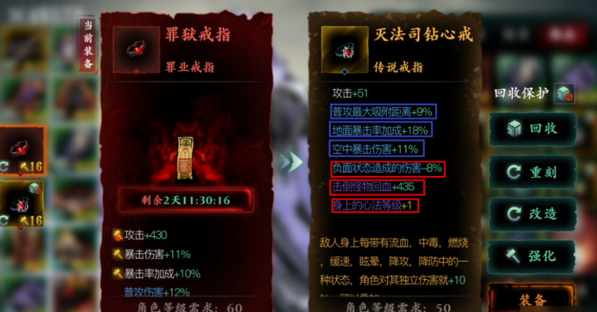 用的时候记得看清楚装备的负面效果是啥,有些装备的debuff特别狠,比如扣血或者降防御,这时候用单日洗罪符就能暂时解决问题。不过它只能压一天,时间过了效果就没了,所以最好在打高难度副本或者PVP之前用,别平时刷图随便挥霍。如果暂时没洗罪符,也可以先把罪业装备存着,等有了再净化。单日洗罪符虽然方便,但不是永久解决方案,后期还是得攒资源搞更高级的洗罪符。