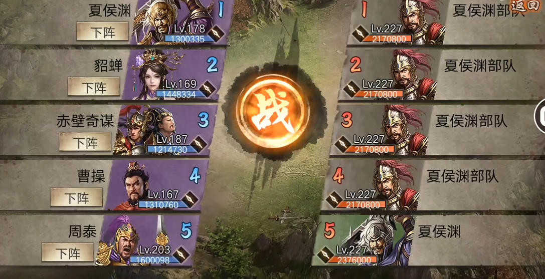 打副本时,夏侯渊特别适合山地地形,能额外增加25%的战斗力。比如227级夏侯渊副本,敌方带4车和70级方圆阵,战法伤害很高。这时候可以用夏侯渊、张辽、周瑜、诸葛亮、曹操和周泰的组合,优先给主C装备固若金汤,其他武将根据情况调整。开局夏侯渊直接4车起手战法,快速解决敌方前排,貂蝉随后用战法控制,周泰负责收割。如果运气好,这套打法能轻松过关。