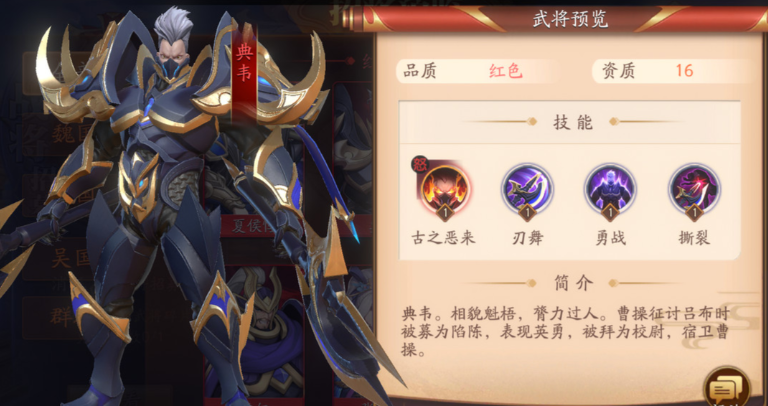 玩转单核典韦阵容,咱们得先明白典韦的核心特点。这家伙开启怒气技后简直是个战神,吸血、增伤、免控样样行,但问题就是太依赖怒气技了。如果怒气没攒出来,他脆得像张纸,分分钟被秒。所以咱们的阵容核心思路就俩字——保典韦!让他尽快开大,开大后基本就能接管战场了。