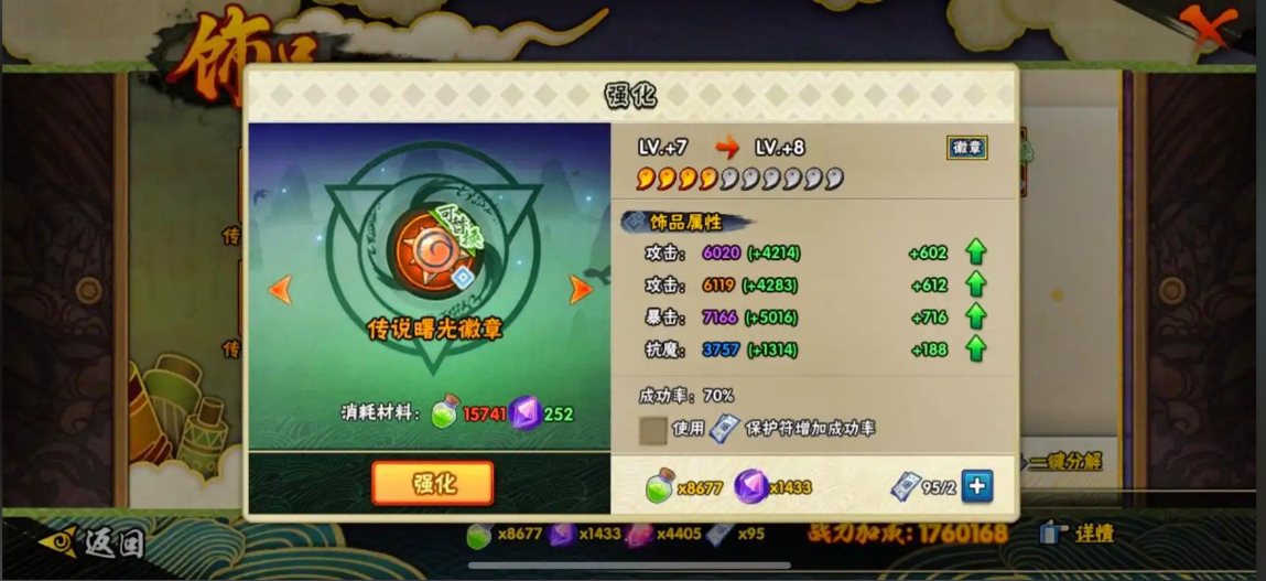 如果你正处于抗魔值提升的关键期,建议先集中强化封印饰品,因为它的获取门槛相对较低,且强化消耗的材料比祝福饰品少。但要注意,封印饰品强化到13级以上分解时才会返还保护符,所以别急着分解低强化等级的饰品。对于资源有限的小伙伴,可以优先将封印饰品强化到20级左右,这样既能提升抗魔值,又不会浪费太多材料。
