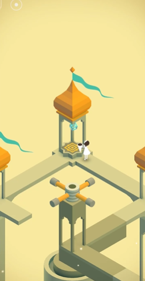 在纪念碑谷初代作品中,名为花园的第二章,其核心通关路径围绕着操作场景中央的旋转按钮来改变建筑结构,从而为角色艾达开辟道路。游戏过程要求玩家首先旋转中间按钮,将方块平台调整至特定位置,让艾达能够走到下方点击激活第一个橘黄色机关按键;道路会发生变化,玩家需要继续旋转中间按钮,使新出现的道路连接至右侧区域,以便艾达能够抵达并按下第二个橘黄色按钮;当深灰色的道路模块移动至顶层后,最终一步是通过旋转旋钮,利用视觉错觉使原本断裂的道路在二维平面上连接成通往终点的通路,引导角色抵达即可完成本章。