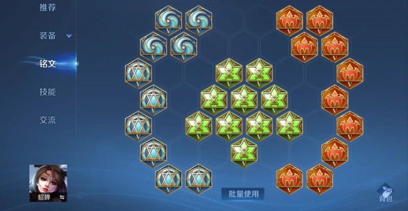 除了出装,铭文的搭配也需要配合这种物理输出的思路进行调整。比较推荐的铭文组合是狩猎、鹰眼加上红月。这一套铭文能给你提供攻击速度、移动速度还有物理穿透这些属性,能很好地弥补你前期因为没出法术装备而缺少的伤害,让你在对线和发育的时候不至于太吃亏。你需要注意,选择了AD出装也就意味着你放弃了传统貂蝉出装里那些能减少技能冷却时间的属性,你的技能会转得比平时慢,所以不能再像法术貂蝉那样频繁地跳来跳去丢技能了。这时候就更考验你对走位的把握,还有对普通攻击节奏的控制,要学会在技能中间穿插普攻来打出伤害,二技能那个短暂的无敌效果依然是你非常重要的保命手段,要用它来躲掉对方关键的伤害或者控制技能。