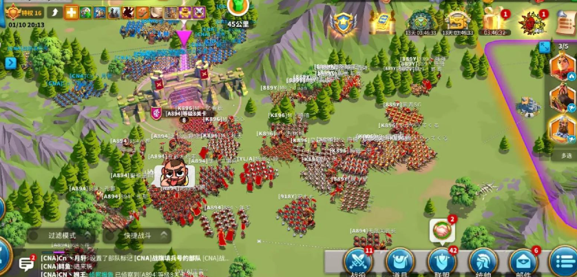 部队操作方面,自由行军系统允许在地图上任意调度,长按屏幕选定部队后拖动至目标位置即可实现移动或驻守。设置快捷编队功能能预设多支部队组合,便于紧急情况下快速响应。联盟协作能通过集结功能整合多支部队发起大规模进攻或防守。资源积累需通过升级经济建筑和参与活动来保障持续供应。联盟资源互助和外交合作能进一步缓解中期压力,通过联合活动巩固兵力优势。
