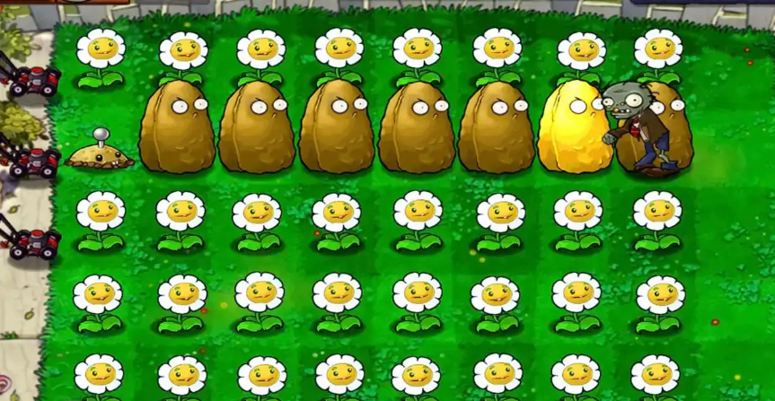 经过强化的植物如大喷菇、窝瓜、高坚果、三叶草、机枪射手和土豆雷等表现尤为突出。这些植物因其独特的机制改动或伤害提升,成为了应对高难度关卡的核心力量,合理运用它们是通关的关键。攻击型植物中,大喷菇的性价比极高,其攻击范围变为一整行,提供了优秀的直线穿透伤害,堪称中期的输出核心。机枪射手一次能射出六颗豌豆,火力非常猛烈。窝瓜得到了史诗级强化,攻击范围增加到周围两格,就像一枚可重复使用的微型核弹,能高效清理密集的僵尸群。土豆雷的准备时间缩短且爆炸范围增至3x3,在前期拖延节奏和应急处理中作用巨大。