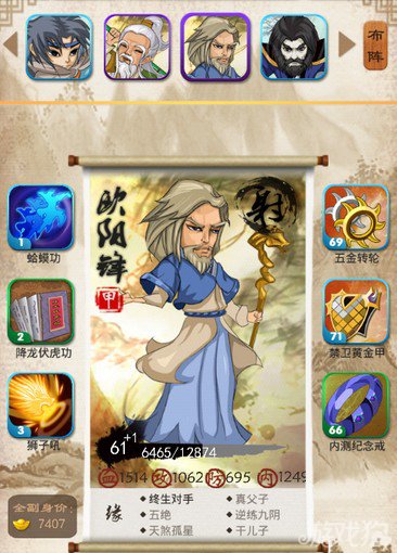 黄蓉定位为组合核心防御辅助,培养方向全程堆叠防御属性,同样执行血内同洗策略,依托自身优秀防御成长与软猬甲缘分,配合与郭靖、郭襄的三向防御羁绊,大幅提升整体队伍减伤能力,无需过多投入攻击资源,重点强化生存与辅助能力,站位紧贴郭靖形成前排联防,既能分担伤害又能触发羁绊联动,让核心输出位更稳定站场,黄药师与萧峰作为搭配成员,前者基础培养即可激活缘分提供属性增益,后者侧重防御培养与郭靖形成双向防缘,进一步加固前排防线,七星阵放置杨康、灭绝等缘分弟子,无需消耗培养丹即可完整激活所有羁绊,让组合属性收益拉满。