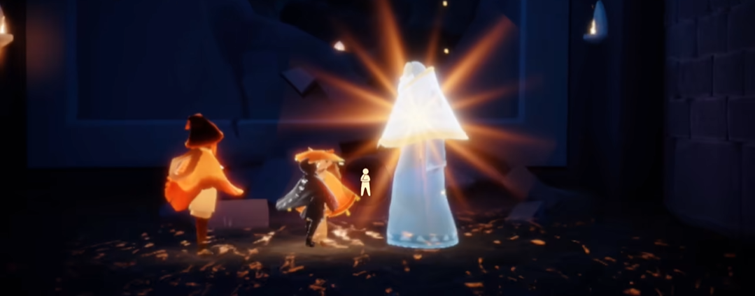 进入空气试炼后,先沿着常规路线前进,点燃沿途烛台存档,抵达第二个存档点后继续前行,来到带有大柱子的平坦平台,此处风力稳定,是最适合触发背背飞天的位置。两人需紧贴站立,确保角色模型完全重叠,避免因距离过远导致动作触发失败,同时确认双方都已解锁背背,且处于可互动状态。准备就绪后,两人同时点击对方头上的背背标识,触发后角色会立即垂直向上飞行,飞行过程中无需操控方向键,角色会保持直线升空,直至抵达试炼顶部区域。