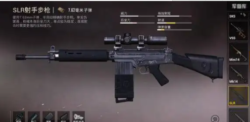在这些枪之中有两把枪都是玩家心中不分上下的射手步枪,所以他们用来进行对比也是很好的选择,玩家可以优先从属性上来看,sks还有slr他们的子弹还有设计程度都是一样的,但是二者相比的话,后者的威力是要更高的,在稳定性上也是更好的,虽然后者的拾奇速度会比较慢,但是其实属性上来说他们都差不多。在比赛对局中的伤害才是硬道理,但是他们在攻击敌人身体的时候效果是一样的,只不过是或者可以直接一枪打残一级防护的敌人,这一点还是很难得的,所以后者可以在前期的时候快速的击杀对手。在实战的过程中,他的连发单点伤害效果完全碾压,前者配件也比较容易集齐,所以这个枪支不是很吃配件,在很多情况下,也是可以使用的。另外,他的子弹下落也要比前者更好,再近距离里面根本就不需要过多的精细瞄准,但是他的后座力还是比较大的,玩家一定要注意好这一点,但是他的优点还是多于等待速度,不用很长理论上来说,玩家的攻击什么时候释放出去,这把枪几乎没有延迟就会立马释放弹药。