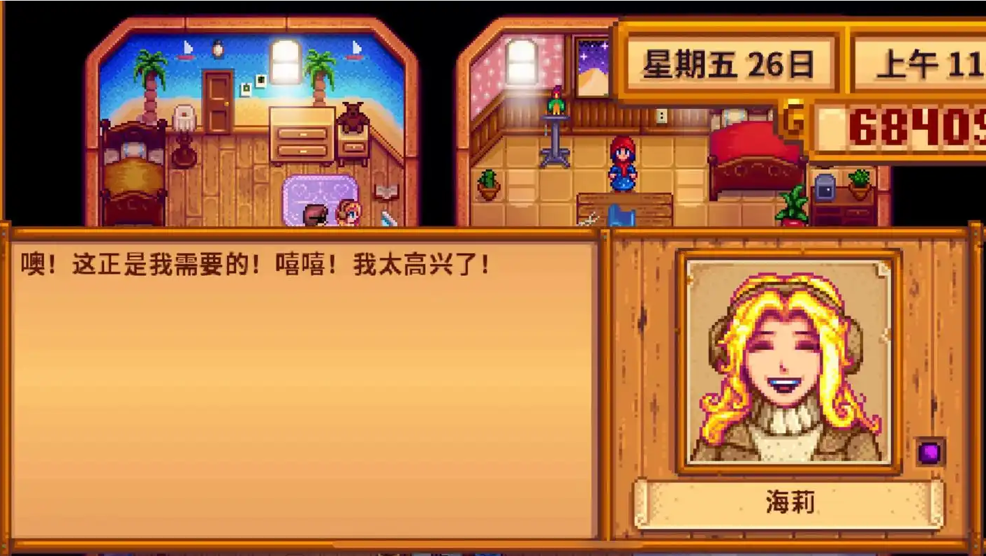 触发海莉的9心事件,首先得把好感度刷到9颗心。这可不是随便送点礼物就能搞定的,得花点心思。她最喜欢向日葵,秋天去种子店买点种子种上,成熟后送给她能快速提升好感。平时记得每周至少送两次礼物,生日那天更要准备她喜欢的物品。好感度达标后,直接去她家找她,就会自动触发9心事件啦。