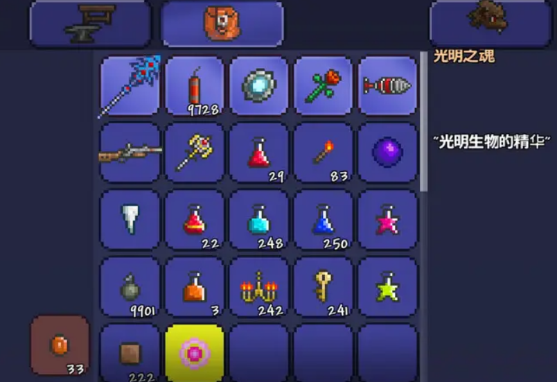 光明之魂的获取效率可以通过环境改造和道具辅助来提升。使用神圣溶液将刷怪场地改造为神圣环境能够增加敌怪生成数量,放置水蜡烛则可以进一步提高刷怪速率。地表以上的神圣之地不会掉落光明之魂,必须在地下洞穴层或更深处才能获得。建议玩家在刷怪时准备足够的战斗装备和回血道具,以应对高强度的连续战斗。