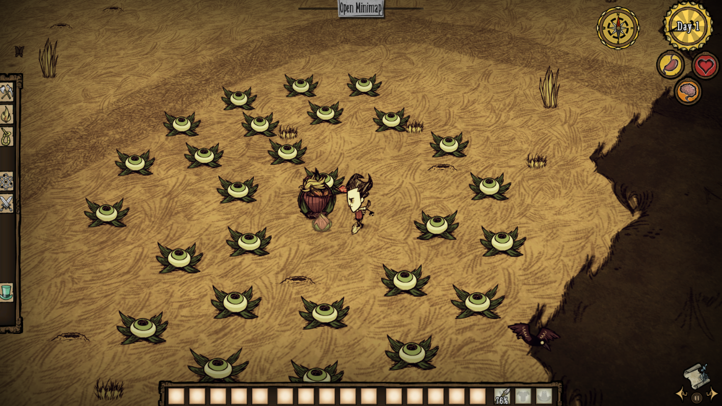 食人花的不可预测性也使其难以成为可靠的生存工具。不同食人花的眼球草会互相攻击,导致诱饵频繁收回或母体被误杀。即便玩家成功控制眼球草的生长范围,食人花的诱饵机制仍会干扰基地的正常运作。诱饵被采集或吃掉后,所有眼球草会死亡,玩家需等待两天才能重新生成,期间食人花完全失去作用。